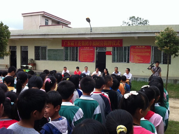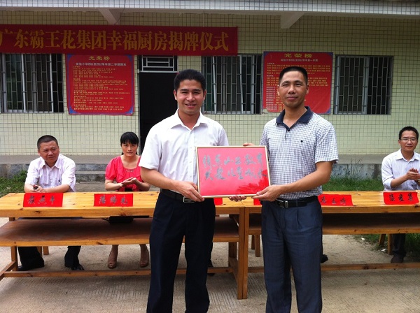 5月14日上午10時,我司副總經理鐘遠愛與團河源市委和團東源縣委的有關領導一同到東源縣彰溪鎮畬族鄉實驗小學參加廣東霸王花集團“幸福廚房”揭牌啟用儀式。在儀式上,畬族鄉實驗小學校長對我們集團的善舉致辭感謝并向我們集團贈送了“情系山區教育 關愛兒童成長”的牌匾。