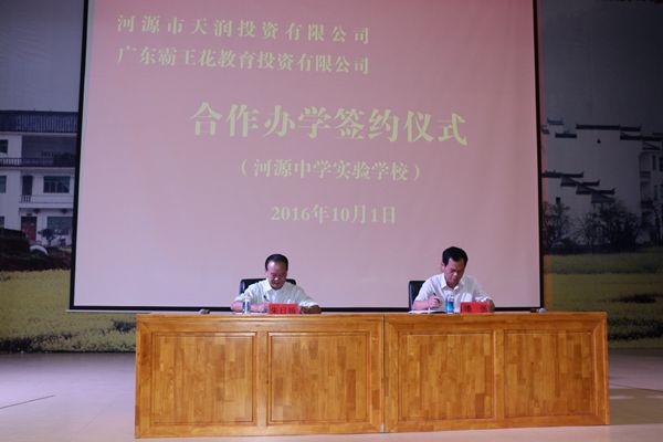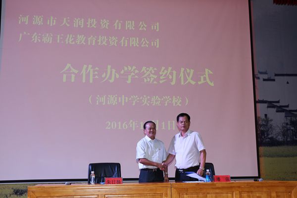 金秋十月,舉國同慶,霸王花人也迎來了一個不同凡響的國慶佳節。2016年10月1日上午10時,霸王花集團旗下教育投資有限公司與天潤投資公司合作辦學簽約儀式在河源實驗學校禮堂隆重舉行。