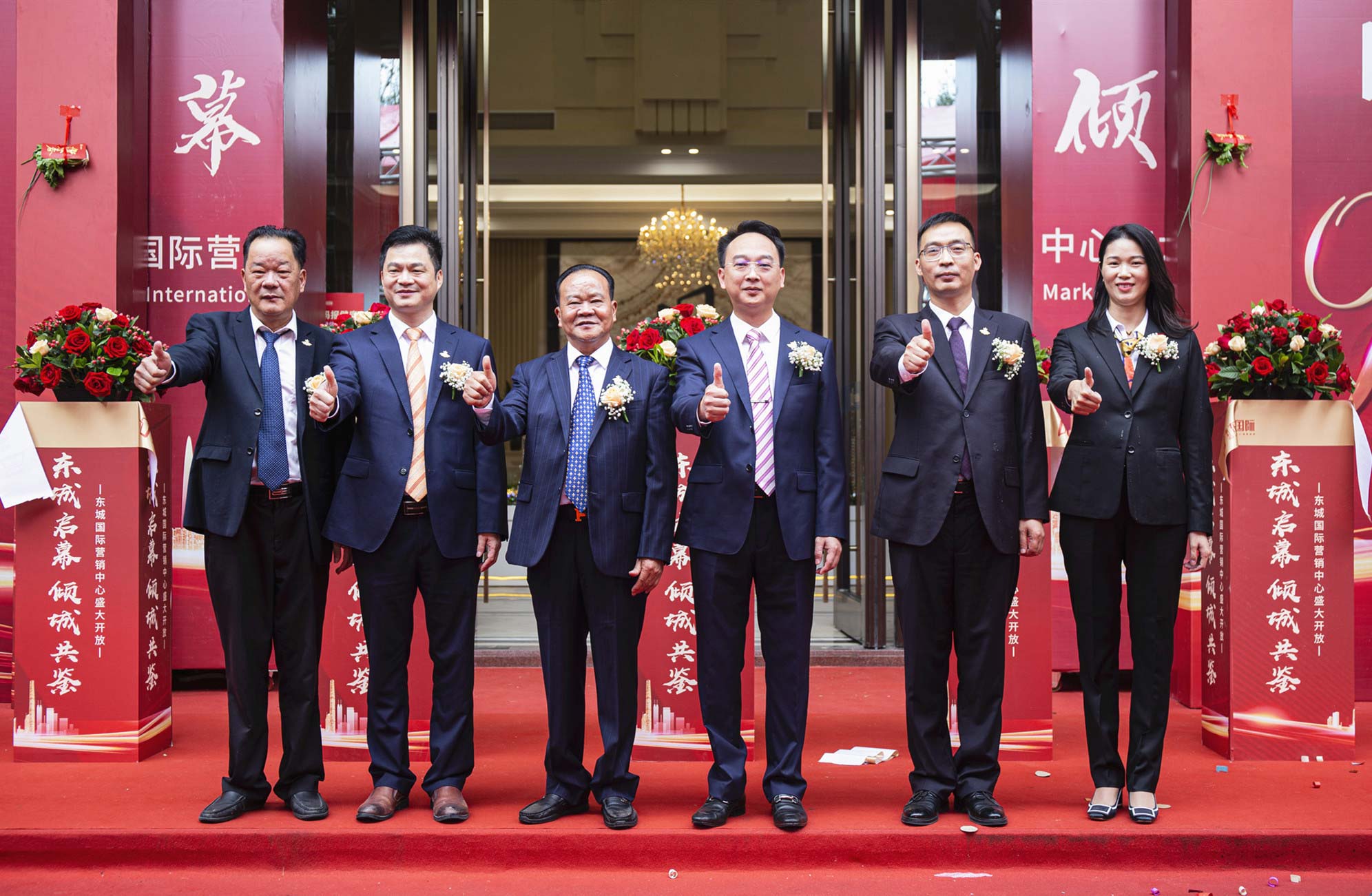 隨后,朱日楊董事長、朱榮業總裁、陳駿良副總裁、朱利昀副總裁兼財務總監、陳永輝常務副總經理、劉顯花副總經理,共同為霸王花˙東城國際項目營銷中心剪彩。