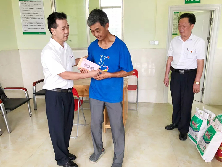抵達(dá)災(zāi)區(qū)后,羅友望同志和黨委委員一行先后走訪了周觀仁、周國富等受災(zāi)老黨員,慰問中,羅友望同志和老黨員親切交談,詳細(xì)詢問他們受災(zāi)情況,了解他們的家庭、生產(chǎn)、生活、健康等情況,捐贈了米粉、食用油等物資并向他們送上慰問金,鼓勵(lì)他們在當(dāng)?shù)攸h委的領(lǐng)導(dǎo)下,勇于克服困難,堅(jiān)定信心,積極面對生活,加快復(fù)產(chǎn)重建。老黨員表示非常感謝霸王花人的暖情關(guān)懷,會把黨的關(guān)懷和溫暖傳遞到受災(zāi)黨員和群眾中,會堅(jiān)定信心,重建家園,永遠(yuǎn)跟黨走。