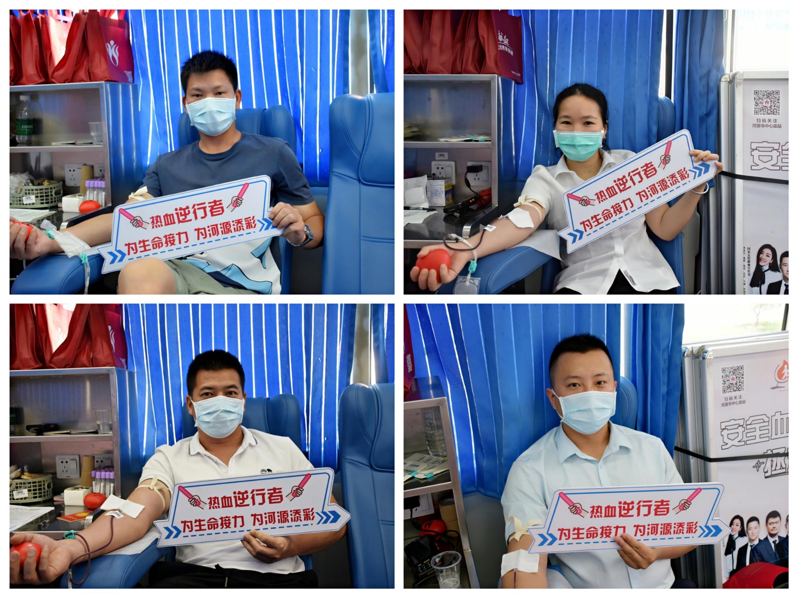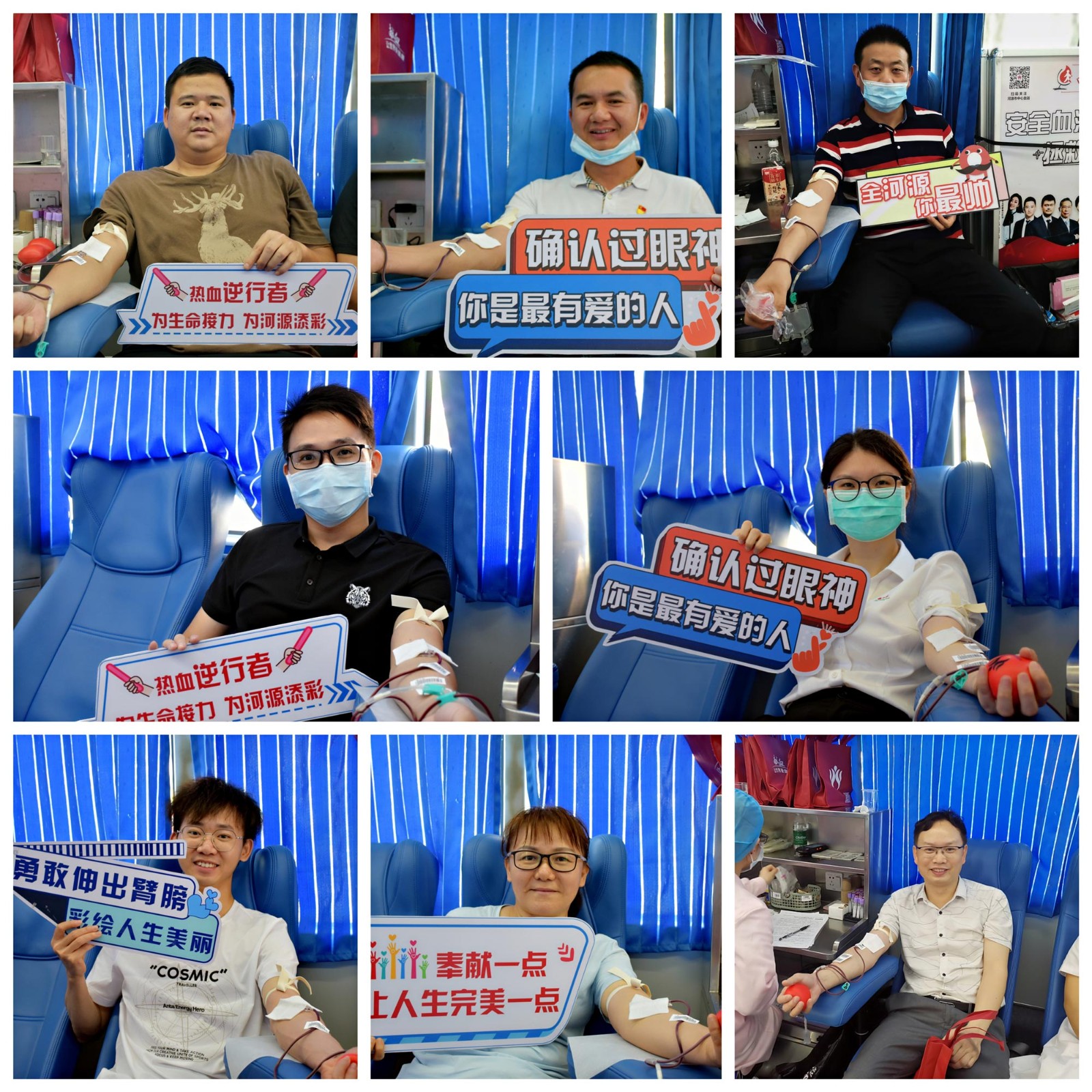 在無償獻血大巴上,員工們洋溢著笑容,自豪地卷起袖子,愛心隨著鮮紅的血液傳遞,現場氣氛溫馨而感動。